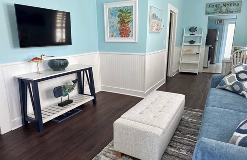 Discover this adorable cottage in Fort Myers with a heated pool. This 1-bedroom gem features a cozy queen bed, a living room with a comfy sofa bed, and a bathroom stocked with a hair dryer. Enjoy modern conveniences like a washer/dryer, AC, WiFi, heating, and an iron. Private parking and an amazing garden yard. You're sure to make fantastic memories with a stay at our place.