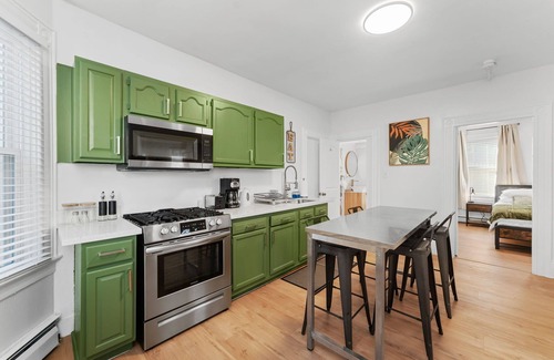 This unit is perfect for your group’s stay in Providence. Located at the front of the first floor in a cozy multi-family house, this space combines comfort, style, and convenience for an unforgettable experience.