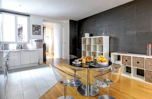 Enjoy staying in the heart of Paris’s Montorgueil Quarter area with this spacious 1-bedroom, 78 square meters apartment located on the 4th floor of a secure residential building without an elevator. Self check-in starting from 3 :00PM by picking up keys at a nearby shop. Super-fast Wi-Fi (1/Gbps) for working from home or streaming your favorite shows.