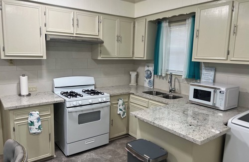 Discover this terrific 2-bedroom gem in Baton Rouge. This enchanting house features 2 queen beds, a cozy living room, and a fully equipped kitchen. Washer and dryer unit, large fenced in yard for parking and tailgating. Smart TV’s in each room, fully furnished including bedding, and kitchenware. Guests can unwind in the tranquil atmosphere or take a relaxing shower or bath in the bathtub. Enjoy your time in Baton Rouge at our charming house.