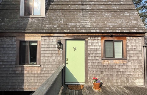 Sengekontacket pond in Oak Bluffs is waiting for you at this quiet 2-bedroom townhouse with a private deck overlooking a wooded back yard. Inside, you'll find a nice mix of comfort and convenience with a queen bed, and a twin over full bed bunk to accommodate 5 guests. We provide comfortable accommodations with amenities to help you enjoy your stay. Kitchen provides guests with a Cuisinart coffee maker, kettle, blender, toaster, dishwasher, gas stove & microwave. Enjoy the phenomenal amenities like a tennis & pickleball court, fresh water pond and Sengekontacket Coastal pond with dock access. Great for kayaking or paddle boarding.