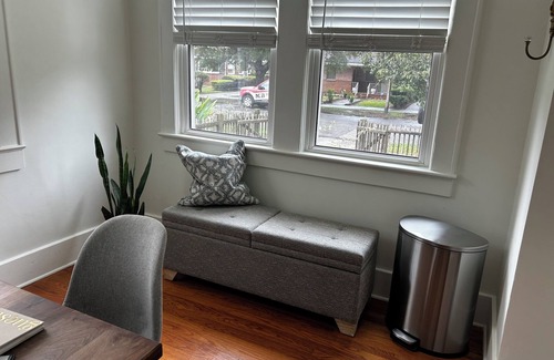 This Charleston house boasts 3 inviting bedrooms. Each room is perfect for a cozy night's sleep. With amenities like a hair dryer, AC, iron, and heating, guests will feel right at home. The 2 bathrooms offer convenience and comfort during your stay. We're happy to assist with any questions while you stay at our house.