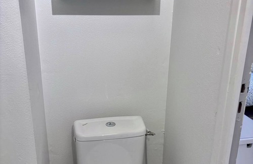 The space includes a comfortable double bed, a fully equipped kitchen to prepare your meals, and a functional bathroom. A very handy extra: the apartment features a washer with dryer function, perfect for longer stays.