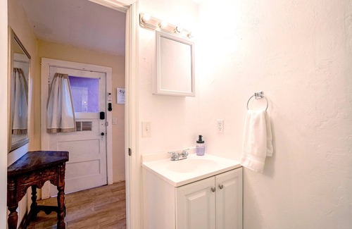 This home is just minutes from many great restaurants, breweries, bars, coffee shops, and sidewalk cafes. The kitchenette is equipped with a coffee maker, mini fridge, a microwave, and a toaster. We keep it stocked with filtered water, ice, ground coffee, creamers, and sugar and sweeteners so you have everything you need. There are also plates, bowls, glasses, coffee cups, wine glasses, a wine opener, and silverware.