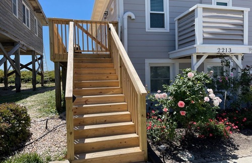 Charming Beachfront Cottage Awaits You! Direct access to beach off deck/walkway. | House in Oak Island, NC
