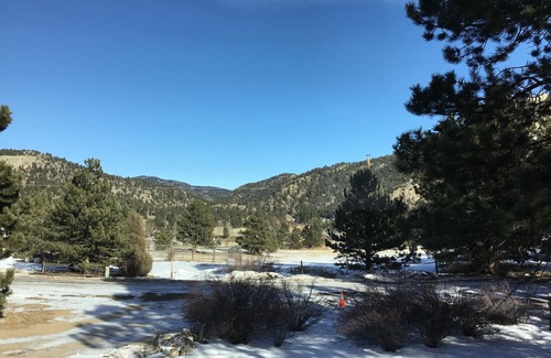 Our cozy, charming cabin has everything you might need for an amazing, peaceful or adventurous, stay near Rocky Mountain National Park (4.7mi or a 12 min drive). Nestled in the trees on 1 acre in a quiet residential neighborhood, quiet hours are 10pm to 8am. We have plenty of free parking in the private driveway, easy access summer or winter. 4 steps with a sturdy handrail lead from the driveway up to the deck and front door. (We live right across the road in case you need anything during your stay but insure you have the privacy you need.)