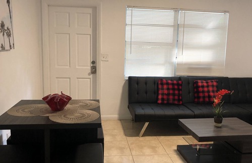 Charming cottage style 2 bedroom 1 bath apartment located in the heart of Delray Beach. This apartment is perfect for anyone looking to be within walking distance of everything Delray Beach has to offer, including the beach which is only 2 short miles away. The apartment features modern furniture, convertible couch, fully stocked kitchen, 50" TV, and extra linens. Private BBQ grill, table and chairs to enjoy an evening outside. We offer unlimited free parking and Wifi