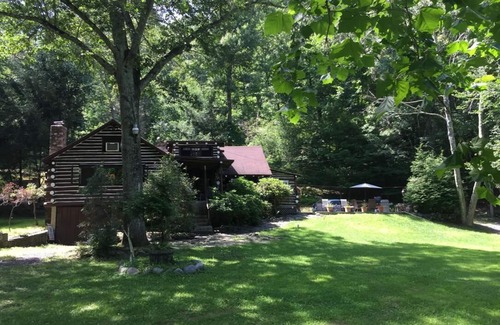 100% whole Chestnut Log Cabin available to rent for a short getaway or long relaxing vacation. Peaceful & private with breathtaking views of the trout stocked creek from every window located on a private road.