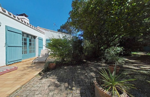 Located in the heart of the Bois des Eloux, just 200 meters from the beach, in a peaceful and unspoiled setting, this charming Noirmoutier house on a wooded plot combines authenticity and comfort with a pleasant living room equipped with a television and Wi-Fi, opening onto a fully equipped modern kitchen. The sleeping area is divided into two distinct sections. The first sleeping area includes a bedroom with a 160 cm double bed, a cabin bedroom with bunk beds, as well as a bathroom and separate toilet. The second sleeping area has a bedroom with two single beds pushed together, another bedroom with a double bed, and a bathroom with toilet.