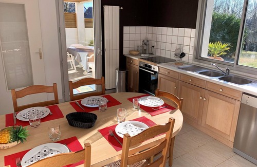 In a very quiet residential area, you will enjoy this charming modern house of 110 square meters, completely renovated, with private courtyards and parking, terrace and large garden of 1000 square meters, for up to 5 people.