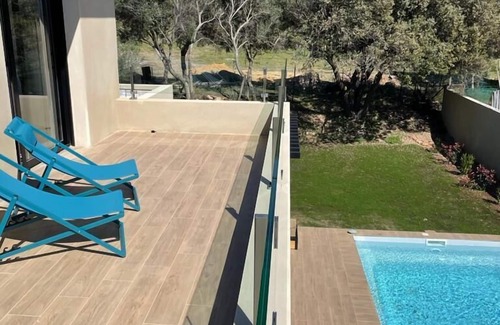 Charming new villa 3 km from the port of St Florent and the beaches is located in Oletta. Charming new villa 3 km from the port of St Florent and the beaches provides accommodation, featuring Pool, Ocean View, Balcony/Terrace, among other amenities. This House features Pool, Ocean View, Balcony/Terrace, to make your stay a comfortable one.