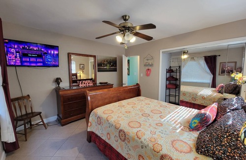 Charming Private 2-Bdrm Suite w Tropical Flair/Kitchen/Laundry/Sunroom/Bus Stop is located in St. Petersburg - Clearwater. Charming Private 2-Bdrm Suite w Tropical Flair/Kitchen/Laundry/Sunroom/Bus Stop provides accommodation, featuring Barbecue/Outdoor Cooking, Kitchen, Parking, among other amenities. This House features Barbecue/Outdoor Cooking, Kitchen, Parking, to make your stay a comfortable one.