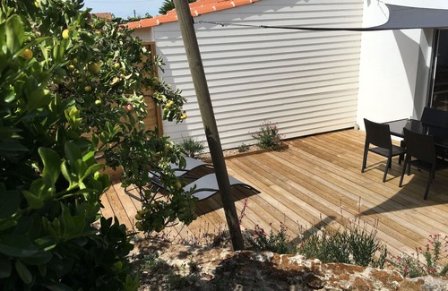 Renovated old house, located in a complex, close to 4 other gîtes, 500 m from the Boucholeurs beach, access by 1 step. On the ground floor (with 1 internal step): living room/lounge/kitchen, 2 bedrooms (1 bed 160) (2 twin beds 80), shower room, WC. Wifi. Enclosed landscaped grounds of 70 m² with wooden terrace (garden furniture, barbecue, deckchairs). A private shelter is available for storing bicycles. You will have a private parking space near the house. Sailing club, departure for the Ile d'Yeu 3 km away, swimming pool 8 km away. Coach service: connection to La Roche sur Yon 500 m away. Options: End of stay cleaning: 50€/stay; Sheet rental for 2 people: 15€/stay; Towel rental: €8/person/stay.