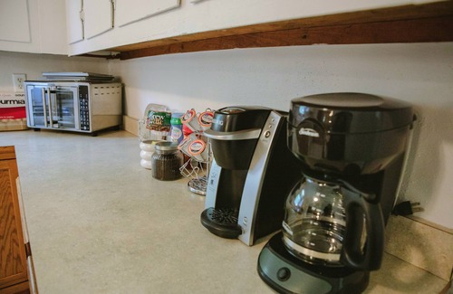 Guests also enjoy a fully stocked kitchen with all the cookware you’ll need & complimentary coffee, snacks, and pantry spices. There is also a small bbq grill outside.