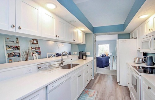 This bright and cheerful 3-bedroom, 2-bathroom home comfortably accommodates up to 8 guests. The master bedroom is a spacious retreat with two queen beds, a private bathroom, and a walk-in shower. The two guest bedrooms each feature two twin beds and share a bathroom with a tub/shower combo – one even has a second TV for added entertainment!