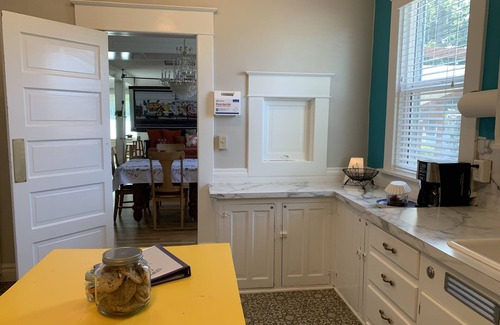 PLEASE NOTE: Our property has two separate units, which can be combined for larger groups. Search for "Historic Century Club House." (If you can't find it, it's likely because it isn't available for the dates you have selected). The other unit, upstairs, has two bedrooms, one bath, a living room, and a cute little kitchen with full-size appliances. The basement is a local artist's painting studio and also the housekeeping/laundry area.