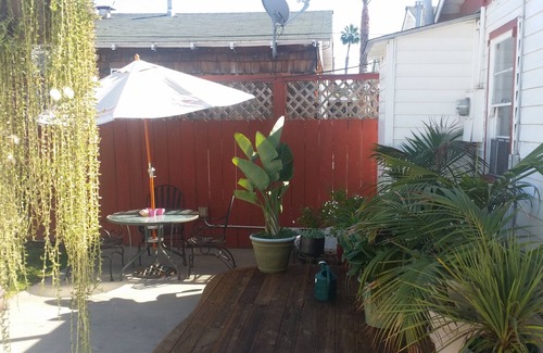 NOTE: This is my residence for part of the year but thoroughly set up as a vacation rental . It has tiled and hardwood (simulated) floors throughout, tiled kitchen counter, brand new Samsung 60' Ultra HD 4K Smart TV, high speed/stable WiFi, all the necessary appliances, kitchenware, linens and items that you would normally have at home. There is plenty of dresser and closet space and is professionally cleaned and kept up-to-date. An Air Mattress is available on request. There is a front yard and patio with barbecue, fire pit and patio table with umbrella on a small, 4-unit, fenced-in property a free laundry room 2 steps from your back door!
