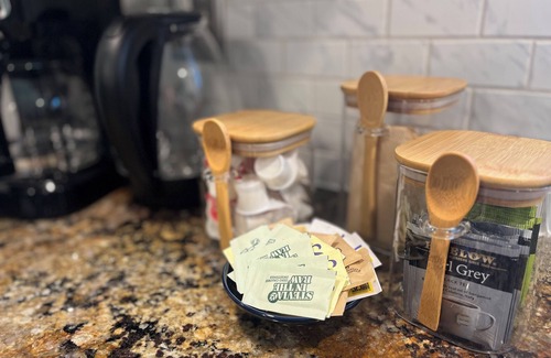 For the guest who enjoys cooking and entertaining, the kitchen is fully equipped with everything needed to prepare a nice meal “at home.” There is a gas stove and oven, full-sized refrigerator, complete set of pots and pans, cooking utensils, and serve ware for both indoor and outdoor dining. If additional kitchen items or place settings are needed, please let the host know and she will make every effort to accommodate the request.