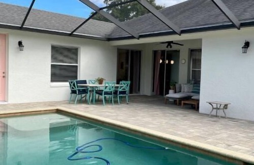 The pool is not heated, most of the year it is comfortable but in the coldest winter months it can be pretty cold. There is a covered lanai with seating and have I mentioned that the entire space is screened in?Extra pool towels are located in the laundry room, we ask that you wash and put away your own pool towels. A propane grill and yard games are located on the pool deck. The back yard is private.