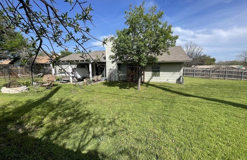 This is a 3 bedroom, 2 bathroom home on a large lot in an old Austin neighborhood with easy highway access to I-35, Hwy 290 and 183. Conveniently located about 10 minutes northeast of downtown and close to trendy Austin areas including Mueller which boasts tons of shopping, restaurants, and park space. There are plenty of amenities to entertain or relax, with a large dining table, bar, and a backyard with fire pit and hot tub. Spin records or connect bluetooth to our beautiful refurbished vintage record player. Kitchen is fully stocked with appliances, dishes, and cookware. We have Google Fiber and a workspace with a desk and monitor. There is plenty of driveway and street parking. We are very pet friendly, with a large fenced yard for your pup(s) to run around in and a catio for indoor kitties.