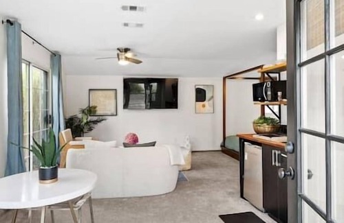 Welcome to this chic and stylish studio in Cardiff! This cozy retreat is designed for your ultimate comfort, featuring a kitchenette, a full bathroom, and a comfy king-size bed for a restful sleep. This little guest house is perfect for unwinding after a day of beach fun. With easy access to the beach and a quick route to the 5 freeway, you're just moments away from San Diego's main attractions. Dive into the coastal charm and convenience – your perfect getaway awaits!
