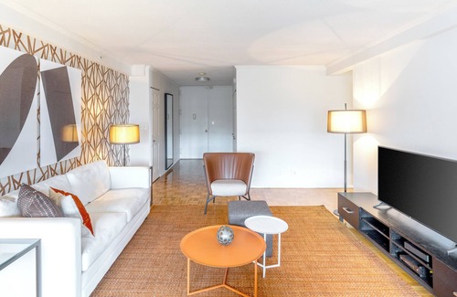 This oversized one-bedroom apartment features hardwood floors, an updated kitchen with granite countertops and new appliances, a private balcony, and a large walk-in closet in the bedroom. All Furnished Quarters apartments include 24/7 guest service. Pets are allowed in select apartments and are subject to a $500 non-refundable pet sanitation fee for one pet, $750 for two pets. Additional charges and size/breed restrictions may apply and vary by building. All pets must be approved by Furnished Quarters. Please let us know ahead of booking if you plan on traveling with a pet.