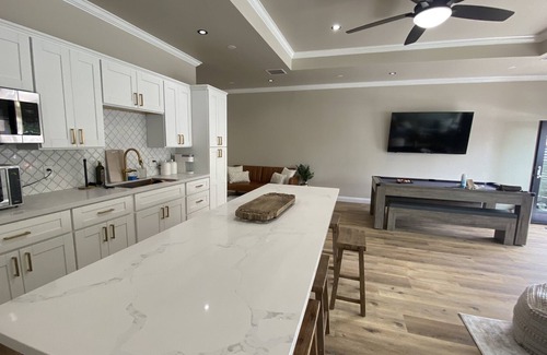 A spacious, private, and super clean getaway in the perfect location in Hillcrest and close to all major attractions including yummy restaurants, venues, boutiques, microbreweries, Downtown, Balboa Park, the Zoo, and much more. This One Bedroom Home backs up to our local bar that has been around 1936, so you are steps away from a cold drink! The dining room table turns into a pool/ping pong table, Large french doors open to the private patio, & there is so much more! Come see for yourself!