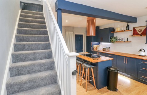 Amenities: Central heating. Electric oven and hob, fridge/freezer, washing machine, tumble dryer and dishwasher. 4 x TVs and WiFi. Fuel and power inc. rent. Bed linen and towels inc. rent. Travel cot, highchair and stairgate available. Off-road parking for up to four cars. Enclosed rear multi-level garden with patio, lawn, furniture and barbecue. Two-well behaved dogs welcome. Sorry, no smoking. Shop 0.4 miles, pub 0.4 miles, beach 2 miles. Note: Due to sloping ceilings, the second-floor bedroom is more suitable for children as there is limited head height. Note: Check-in from 4pm, check-out at 10am