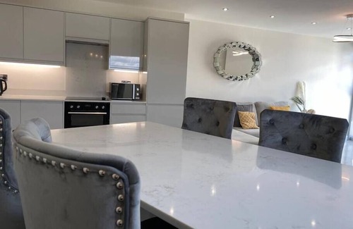 Modern, contemporary two bed apartment, with fantastic panoramic views of Cardiff City Centre. Broadband internet and smart Tv with access to Netflix. Underground covered parking. The master bedroom comes with an ensuite shower room. There is also a separate main bathroom complete with a huge deep bathtub. The kitchen is equipped with a electric cooker, hob, dishwasher and microwave. Fluffy Egyptian cotton towels are provided as well as toiletries.