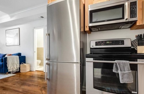 This inviting 2-bedroom Rowhome is stylish yet homey and comfortable, providing you with plenty of space for relaxation after exploring DC’s busy neighborhoods. You can kick back and relax on the ultra-comfy velvet couch and enjoy streaming your favorite show on one of two smart TV’s. When you're not out enjoying all the amazing nearby restaurants and city sights, you can prepare a delicious meal in the kitchen that's stocked with all the essentials.