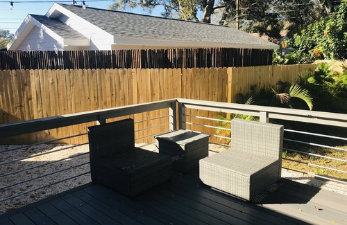 Fully updated and stylishly furnished 3/1 close to all the action downtown st Pete has to offer! The house is in one of St. Pete's most ideal neighborhoods, due to it's safety, quaintness and close proximity to the bay and downtown. For beach days, it's less than a 20 minute drive. Indoors, enjoy a clean, comfortable and restful place, stylishly decorated and tastefully updated, including eco friendly bamboo flooring, granite counters, and a modern bathroom. Outdoors, enjoy the huge backyard with oversized deck, fire pit, overhead cafe lights, plenty of room for outdoor activities, and features a gorgeous historic Grand Live Oak shade tree canopying the yard keeping you cool. The house is right on the bike lane that takes you to the waterfront path to downtown. There is a garage for storing bikes/kayaks etc. The house sits on a quarter acre lot subdivided into two lots. The side lot is privately fenced with a separate entrance to a small guest house being built where the host will be living . Convenient if anything is needed, otherwise enjoy full privacy in the main house and main yard. Enjoy The Burg!