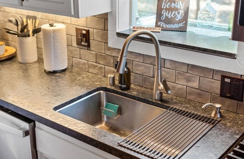 KITCHEN: Our cabin has all new stainless-steel appliances which includes a gas stove, microwave, refrigerator, and dishwasher. Our kitchen is well-equipped with all the cooking and baking essentials that you may need. We have pots and pans, plates and bowls, cups and mugs, and basic kitchen and dining utensils, as well as a rice cooker, blender, toaster, kettle, crockpot, a 12-cup coffee maker and a Keurig Mini coffee maker.
