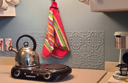 Details, Details, Details - this apartment has sooo many! And The vibe is a little bit spa (Natural oil diffuser and Shiatsu Shoulder & neck & foot/leg massagers, sound machine, cozy robes) and a little bit romance (4 poster bed with fairy lights). Property is one half mile from the beach and two miles from downtown. A very nice street to stroll down to the beach! Quiet residential neighborhood. Please note the kitchenette has a two burner hot plate, microwave, refrigerator, toaster oven. Please understand this kitchenette isn't designed for daily full meal cooking.