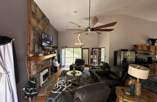 The cabin offers no neighbors for miles, off a main road for easy access; all across from the Cherry River and Monongahela National Forest. Behind the cabin is woodlands for miles. Walk across the road to river for fishing, swimming, or just passing the time listening to the small rapids or the raging river in the winter time. Enjoy the large open deck with multiple seating options. or sit on the covered porch Find us on Facebook at Coal Siding Cabin