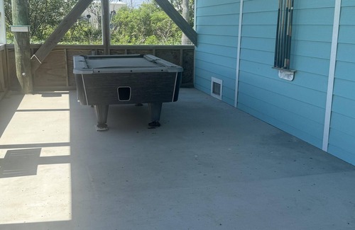 Step outside to enjoy breathtaking Gulf views from the outdoor space, complete with a gas BBQ pit and a boiling pot burner for those who love to cook fresh seafood. The property is designed for comfort, featuring central air conditioning, ceiling fans, and a game room with a pool table for entertainment. The living area is equipped with streaming TV, and wireless internet keeps you connected during your stay.