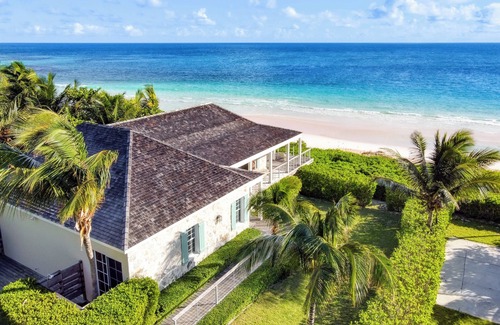 Coconut Beach is an exquisite residence, offering a serene retreat. The expansive deck provides breathtaking views of Harbour Island’s Pink Sands Beach and the protective reefs beyond. The living room, dining room, and kitchen boast magnificent vistas of the deck, beach, and ocean. Covered porches invite you to savor the scenery while being shielded from the sun’s rays. A mere 50-foot stroll from the porch leads you to the pristine beach. This villa features two bedrooms, each with its own en-suite bathroom, complete with a tub, shower, and outdoor shower. The primary bedroom is furnished with a king bed, while the second bedroom offers four twin beds, making it ideal for families. Recent addition of a Master Suite Casita and outdoor kitchen and heated in-ground pool further elevates the serene ambiance of Coconut Beach, offering a luxurious and tranquil escape from the everyday hustle and bustle. This property is truly a haven of tranquility, perfect for those looking to relax and recharge.