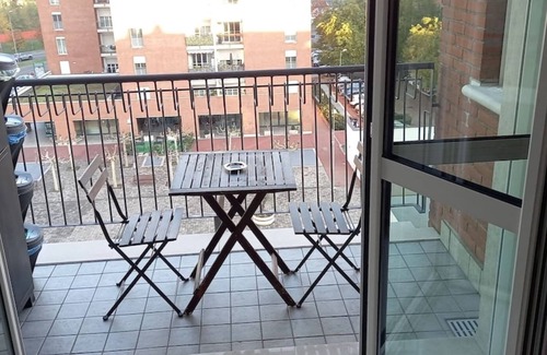 The apartment is also equipped with a livable balcony with table and chairs where you can enjoy meals overlooking the garden.