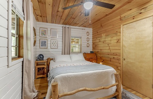 Come relax in our cozy cottage nestled in the woods. This quaint, 4 bedroom, 1.5 bath, 1220 sq foot log cottage is located in the heart of Natural Bridge/Red River gorge area in Cliffview Resort. We are located 7 miles (12 minutes) from the Natural Bridge trailhead and Miguels Pizza. Get ready to unwind and take in nature! Make sure to also bring your fishing poles.. A cleared path through the 1.2 acres of woods to a stocked- catch and release- Lake Millie.