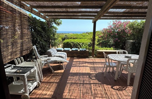 comfortable apartment in Cala Lupo at 850 meters from the fishing village of Stintino. the apartment is only 40 meters from the beach and has a wonderful terrace with patio from which it is possible to admire the sea. The apartment has a double bedroom and one with a bunk bed and a single bed which overlooks the garden directly, 2 bathrooms, equipped kitchen and large living room. If you decide to spend your holidays in this nice accommodation you will feel at home because you will enjoy all the comforts you are used to: washing machine, dishwasher, coffee machine, television are at your disposal. The position of this apartment allows you to forget your car and reach the beach along a small path in the Mediterranean scrub that starts at the foot of the home garden. But if you decide to discover this wonderful area of Sardinia you will find yourself in a strategic position close to the most beautiful beaches: the Pelosa with its crystal clear sea and white sand and the Saline with its white pebbles are just 2 km away. from home. You can discover the naturalistic oasis of Asinara where you will be struck by an extraordinary nature surrounded by a turquoise sea. Cala Lupo is 20 km from Porto Torres and 40 km from Alghero airport.