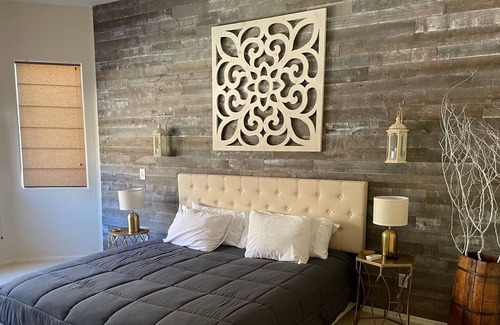 Come enjoy your Phoenix getaway in this quiet home located in the heart of the gorgeous community of Ahwatukee Foothills Reserve. The open and spacious single level home offers 2 bedrooms, 2 bathrooms, 1 fully equipped office, as well as an enclosed backyard with direct views to South Mountain. Enjoy cooking in a well appointed kitchen, relax in comfort with central AC and a wall-mounted smart TV. Sleeps 4 comfortably.