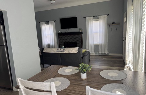 Consider this house your home away from home while you visit Toledo. With 3 cozy bedrooms including a queen bed, full bed, and futon, guests will find the perfect space to unwind after a day of exploring. Enjoy the pleasant heating and AC amenities throughout the property. Fall in love with Toledo and enjoy the magic it has to offer. This house backs up to a public bike trail making for a great, peaceful view off the large back patio. And a convenient place to walk and/or bike. As well as a large fenced in backyard, great for dogs. This property is centrally located in the heart of Toledo, just a few miles from Downtown Toledo, The University of Toledo, Toledo Hospital, Franklin Park Mall and countless great local restaurants, breweries and shops. Whether its a short weekend getaway or a long business stay, this home will be a great place to come back to each day and relax. Run by local owners who care about our guests experience. We feel this house is best suited for 4 people, although it can sleep 5 with the futon.