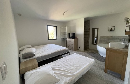 Comfortable villa is located in Vendres. Comfortable villa provides accommodation, featuring TV, Private Pool, Fireplace/Heating, among other amenities. This Villa features TV, Private Pool, Fireplace/Heating, to make your stay a comfortable one.