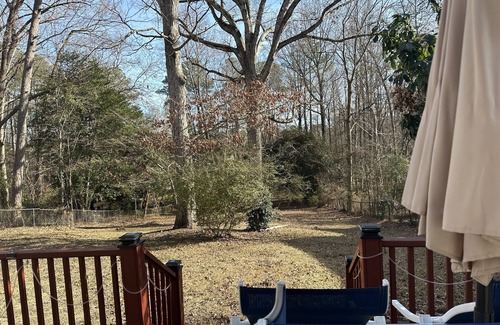 Large wooded yard, patio deck & grill, stocked kitchen, and everything you will need to feel at home!