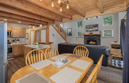 Ideally located, Compass Cabin welcomes you to a peaceful mountain getaway. The main floor is an open concept living, dining, and cooking space where you can enjoy time together and offers a main floor bedroom (queen bed) and full bath (heated floors), as well as a laundry room. Ample space to enjoy meal preparation and a memorable family meal.