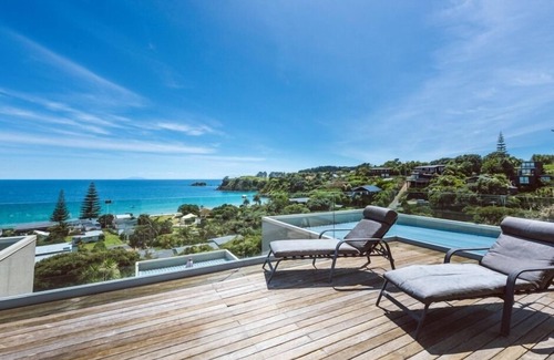Little Barrier Island is visible on the horizon, the islands of the ‘Noises’ and ‘Tiri Tiri Matangi’ are to the left, Nani Island to the right and in the foreground Palm Beach is invitingly close with the sound of the sea ever present.