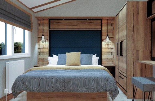 Contemporary lodge with one spacious king-sized bed with en suite. | Ski Chalet in Frampton, United Kingdom