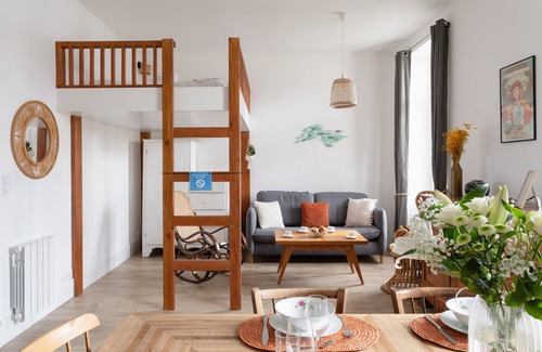 Cocoonr offers you this charming 45 m² apartment with sea view from the balcony, 100 m from Rochebonne beach, in Saint-Malo, France. It can accommodate up to 4 people. Located on the 2nd floor (no elevator), it comprises a pretty 28 m² living room, equipped kitchen, bedroom and bathroom (with shower). Housekeeping is included in the rental price, and 4* hotel-quality linen is provided (sheets, towels, tea towels). Your bed will be made up on arrival.