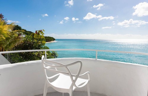 Coralita provides breathtaking 180-degree views, allowing guests to spot sea turtles, tropical fish schools, and distant cruise ships on the horizon. As one of the island's most beautiful and tranquil bays, catamaran cruises regularly anchor directly in front of the apartment, while jet skis and water sports can be easily flagged down for hire.