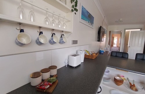 The loungeroom has large flat screen TV and leather couches to relax while the kitchen comes fully equipped for cooking and has plenty of bench space and also includes a comfortable breakfast bar. The kitchen contains an oven, microwave, dishwasher and fridge. Included is a complimentary snack bar.
