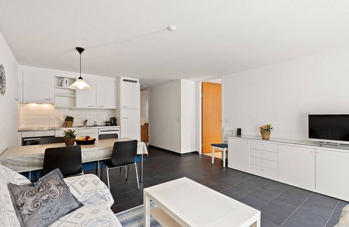 The 68 square meter apartment is simply furnished and comes equipped with amenities such as a dishwasher and television. It can accommodate a maximum of four guests. The property is located on the raised ground floor of the Sursilvana building and has a south-facing balcony. You will also have access to a lift and Wi-Fi during your stay.